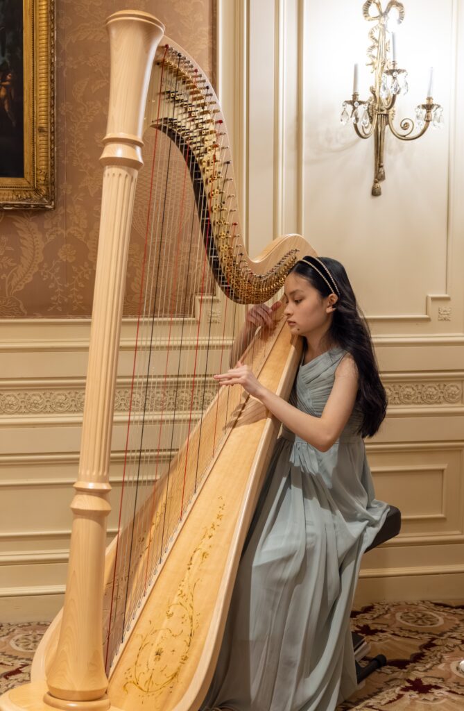 Musical artistry enriched the afternoon, beginning with a formal mini-concert by Charlotte Ngo of the Mainly Mozart Youth Orchestra, followed by Chiara Capobianco, whose harp melodies provided a graceful accompaniment during tea service. Together, music, cuisine, education, and fellowship captured the enduring spirit of the Chaîne des Rôtisseurs.